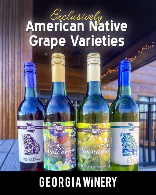At Georgia Winery, we specialize in crafting wines from grapes that are native to America — with a strong focus on the South’s own Muscadine grape. Thriving naturally in our region without the need for pesticides or harsh chemicals, Muscadines are truly a gift from our land — and the heart of what we do.