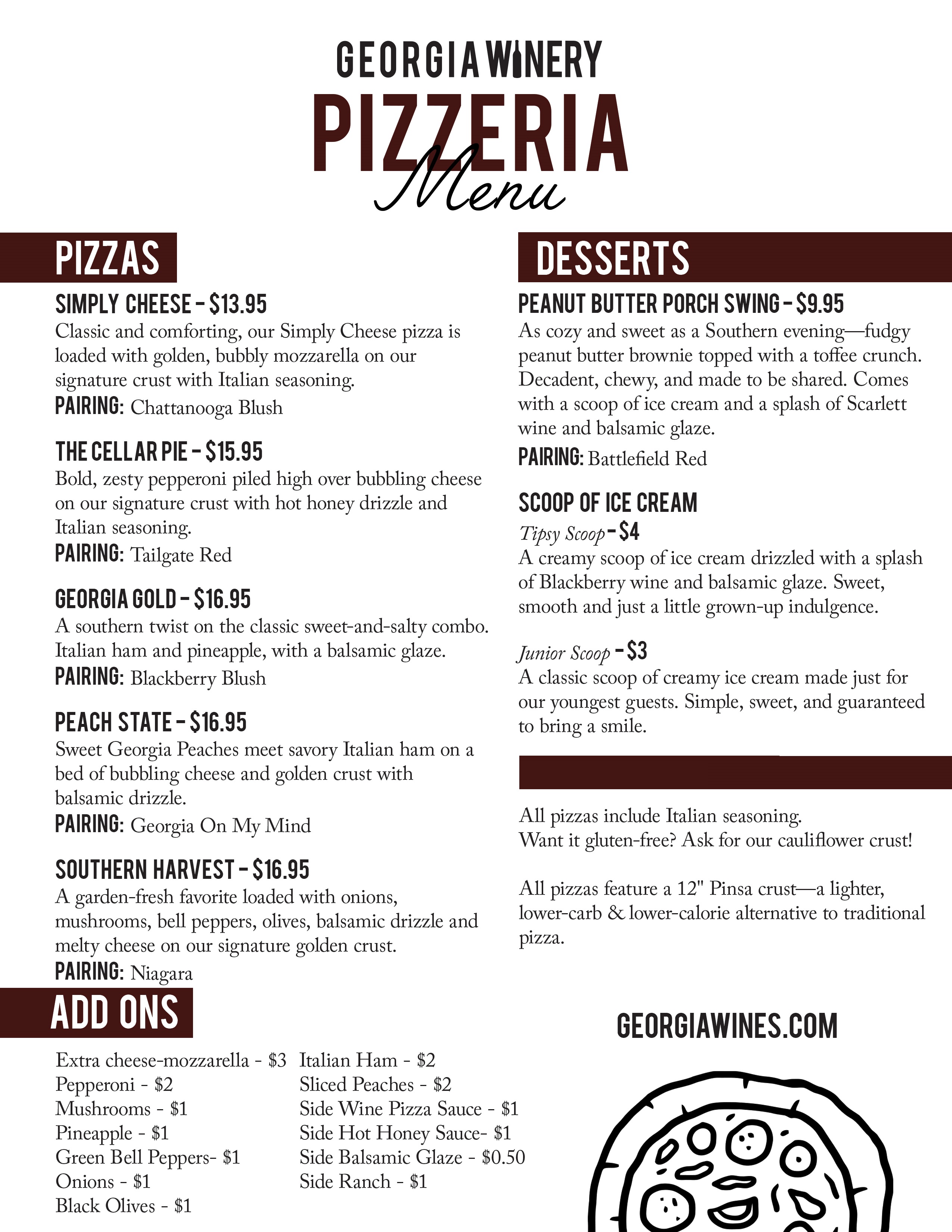 The wait is finally over… PIZZA has officially arrived at Georgia Winery! 🍕✨