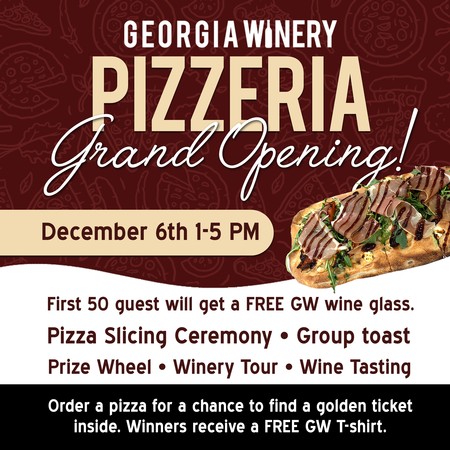 Georgia Winery Pizzeria is open for lunch and dinner all weekend!